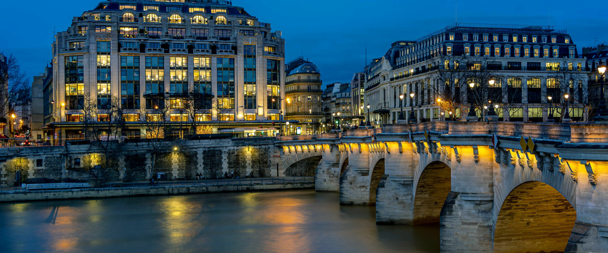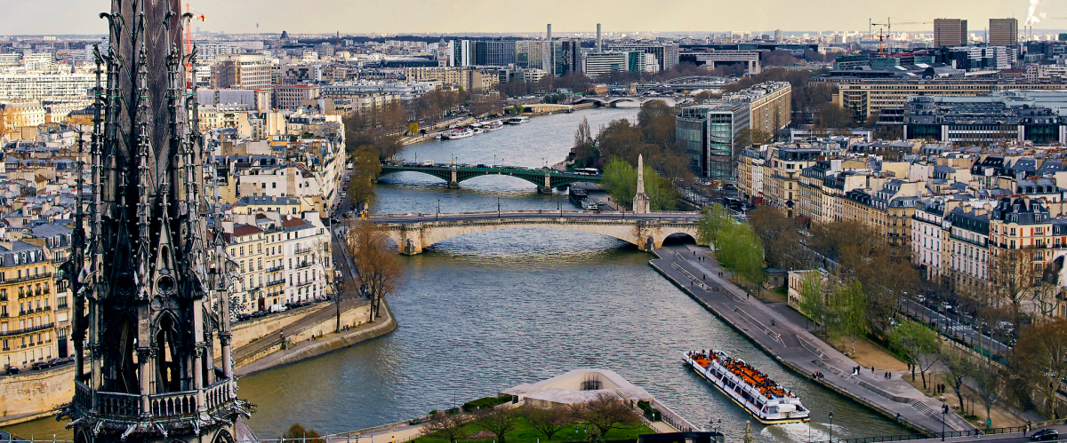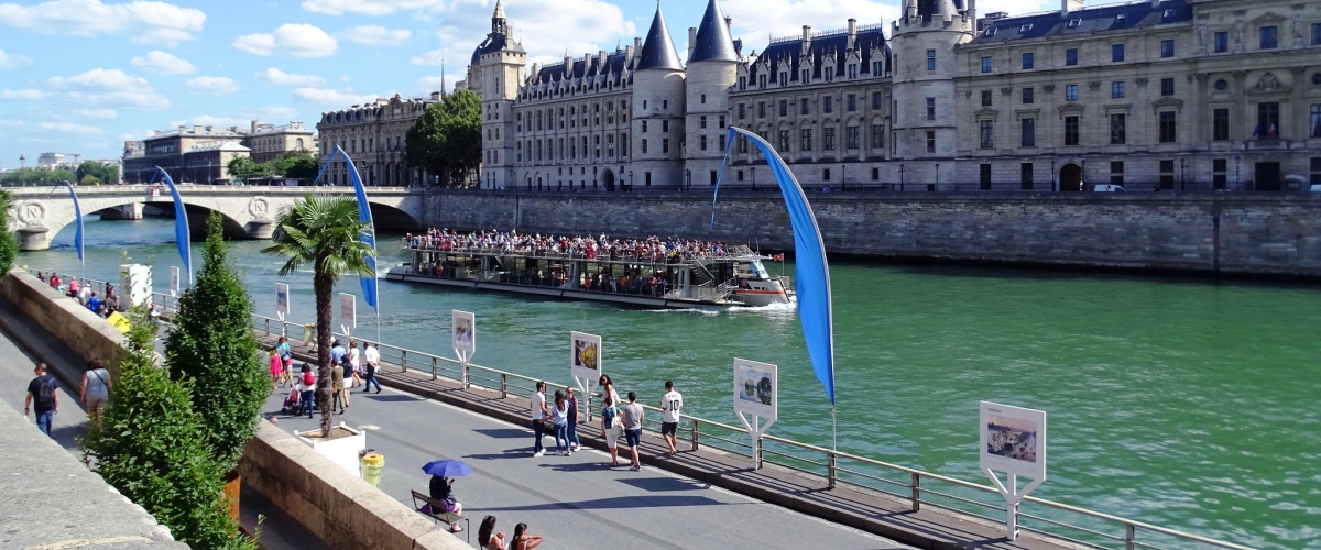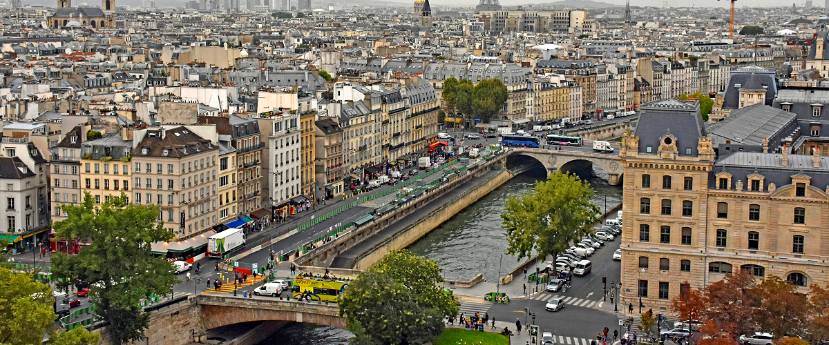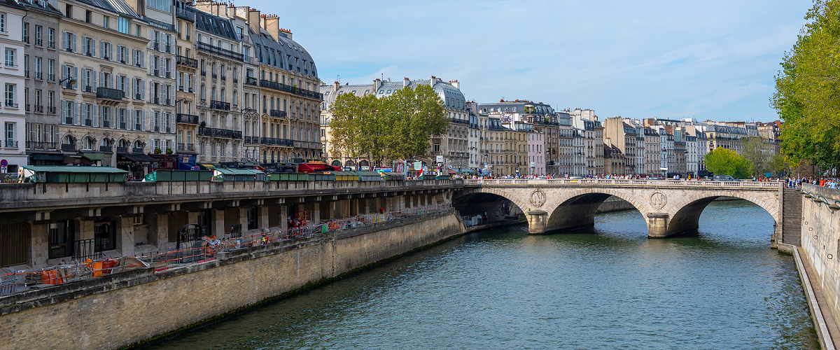 Paris is located in northern central France, in a north-bending arc of the river Seine whose crest includes two islands, the Ile Saint-Louis and the larger Ile de la Cite, which form the oldest part of the city. The river's mouth on the English Channel (La Manche) is about 233 mi (375 km) downstream from the city. The city is spread widely on both banks of the river. Overall, the city is relatively flat, and the lowest point is 35 m (115 ft) above sea level. Paris has several prominent hills, the highest of which is Montmartre at 130 m (427 ft). Paris is one of the few world capitals that has rarely seen destruction by catastrophe or war. For this, even its earliest history is still visible in its streetmap, and centuries of rulers adding their respective architectural marks on the capital has resulted in an accumulated wealth of history-rich monuments and buildings whose beauty played a large part in giving the city the reputation it has today.